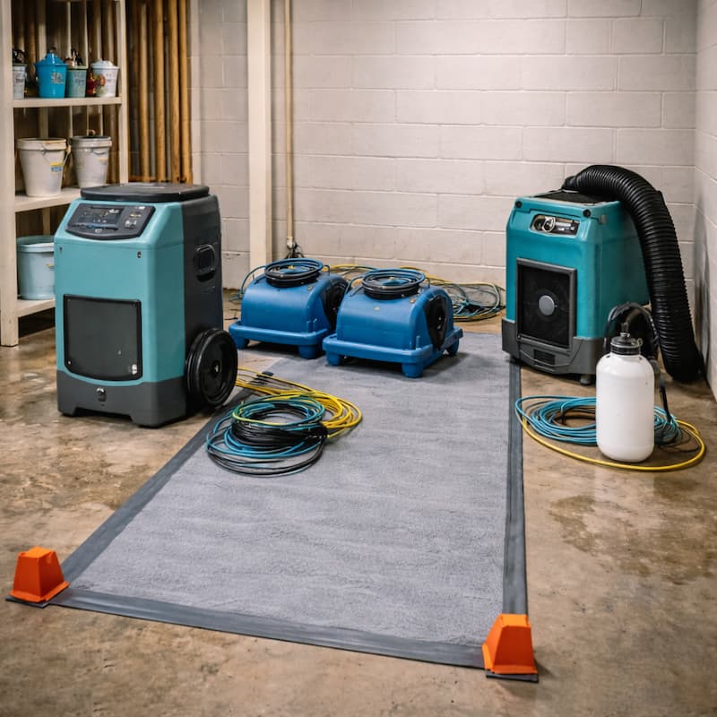 Basements hold moisture differently than upper levels. We evaluate wet framing, drywall edges, insulation, stored contents, and hidden cavities, then use proper drying and monitoring so you don’t end up with secondary issues after the sanitation work is done.